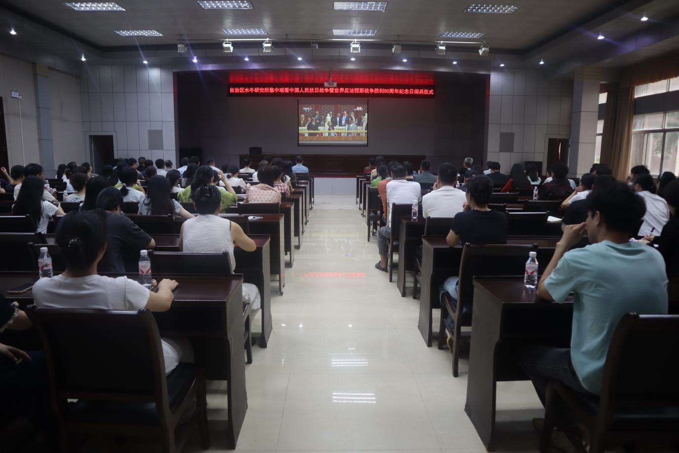 为深入开展爱国主义教育,弘扬“铭记历史、缅怀先烈、珍爱和平、开创未来”的主题精神。2025年9月3日上午,自治区水牛研究所组织全体干部职工集中收看中国人民抗日战争暨世界反法西斯战争胜利80周年大会实况直播。