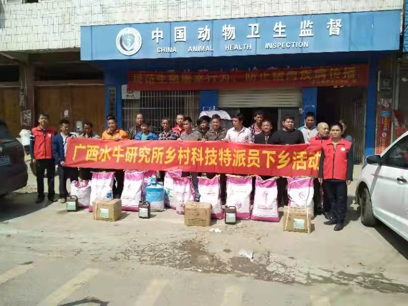 为持续推进我所主持的广西科技基地和人才专项“农村奶水牛散养户生鲜乳质量提升措施研究”项目,10月23至25日,由项目组、所产业支部以及广西生鲜乳质量与安全快检实验室联合组成专家服务团队赴灵山县伯劳镇开展水牛养殖技术培训和物资赠送活动。专家服务团队与当地15户奶水牛养殖户签定合作协议,就奶水牛的规范养殖和生鲜乳质量提升关键技术等内容进行了培训,并向15户养殖户赠送了粗饲料、添加剂、益生菌、消毒剂、检测液等物资,总价值7万余元。此次服务活动为提高伯劳镇水牛生鲜乳的产量和质量提供了有力的技术和物资支持,同时也为我所进一步铺开奶水牛规范化养殖覆盖面,提升农户水牛生鲜乳质量奠定基础。