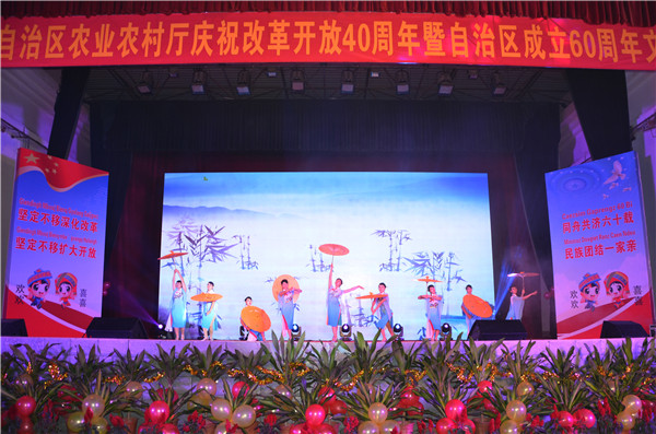 在11月30日由自治区农业农村厅举办的“庆祝改革开放40周年暨自治区成立60周年文艺晚会”上,我所表演的节目《采薇》获得了在场观众的一致好评,展现出了我所良好的精神风貌。