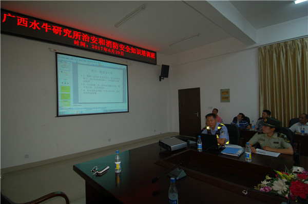 在第16个全国“安全生产月”期间,6月29日下午,我所特邀辖区派出所和消防大队的警官组织召开了“治安和消防安全知识培训班”。我所安全生产工作领导小组成员、各部门负责人,以及辖区各单位的代表参加培训,听取了防火、防盗和相关法律法规的讲授,为我所辖区内的长治久安、平安幸福打下基础。