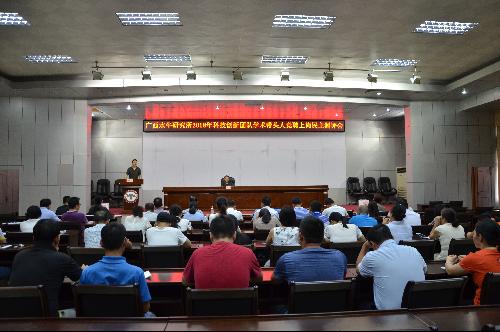 8月9日下午,“广西水牛研究所2018年科技创新团队学术带头人竞聘上岗民主测评会”在我所召开,5位青年科技骨干分别就水牛胚胎生物技术创新团队学术带头人、食品加工与质量安全创新团队学术带头人、水牛育种与繁殖技术创新团队学术带头人、水牛分子遗传与育种技术创新团队学术带头人和水牛营养与饲料科学创新团队学术带头人等5个岗位进行了竞聘演讲。经过民主测评,最终全部确定了创新团队学术带头人岗位的拟聘人选。