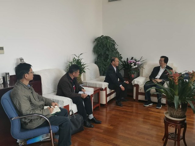 广西水牛研究所所长黄加祥(右二)带领副所长黄奇波(左二)、副所长曾庆坤(左一)拜访中国农业科学院院长唐华俊(右一)。