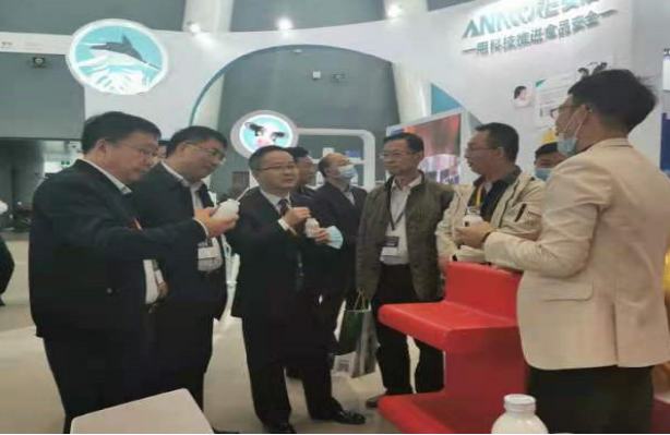全国畜牧总站副书记聂善明,中国饲料工业协会协会工作处处长闫奎友,广西农业农村厅副厅长梁纪豪、畜牧副处长处孙旭波到水牛奶展区参观指导