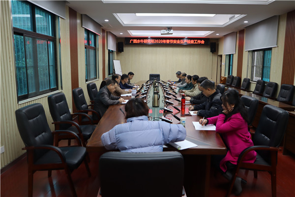 1月14日下午,根据《广西壮族自治区水牛研究所2019年安全生产大排查大整治实施方案》的工作部署,我所安全生产工作领导小组组织各部门负责人开展了安全生产检查工作,重点查找存在的安全隐患,部署了近期及春节期间安全生产的工作责任,要求各部门要全力将安全生产责任落实到位,对发现的隐患进行及时处理和整改,确保我所节庆期间的平安稳定。