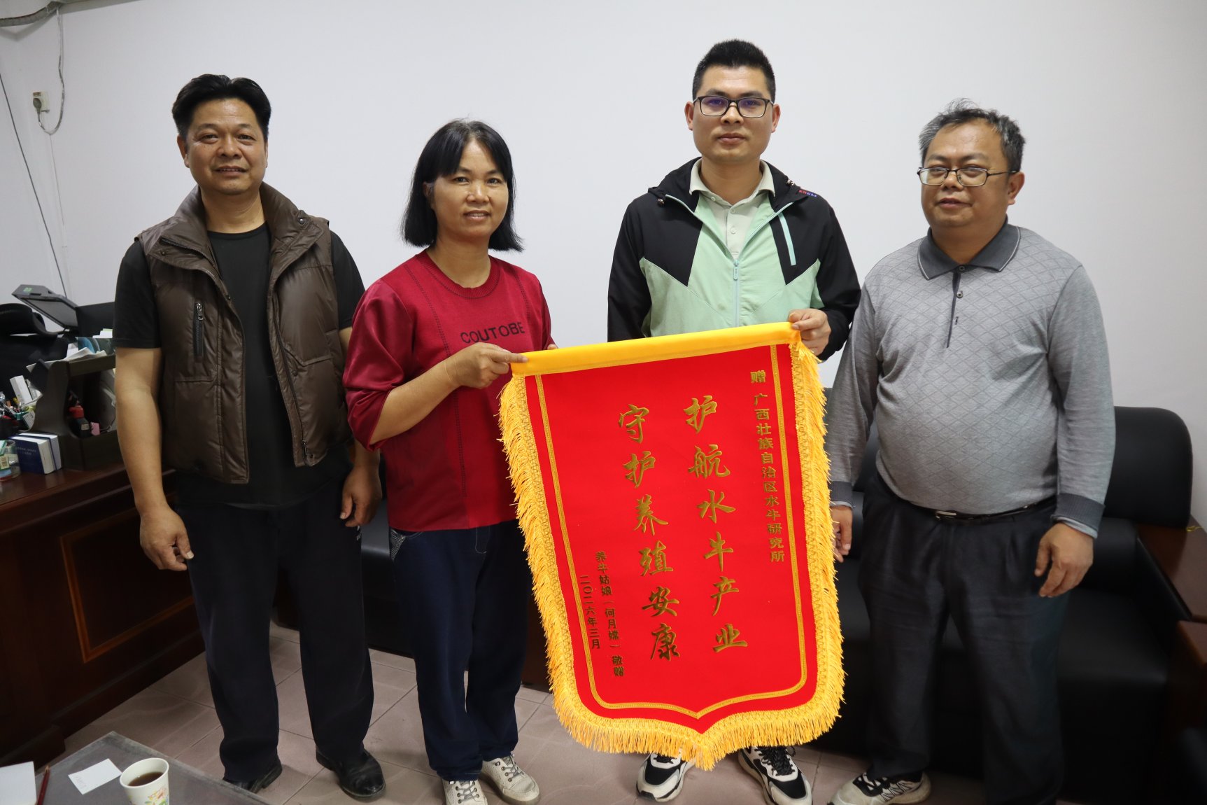 清风和煦,牛踏春泥。在自治区水牛研究所,何女士庄重地将锦旗交到了科技特派员的手上,这面锦旗是基层群众对科技服务最质朴的认可,更是自治区水牛研究所科技特派员队伍扎根基层、服务人民、助力乡村全面振兴的生动写照。