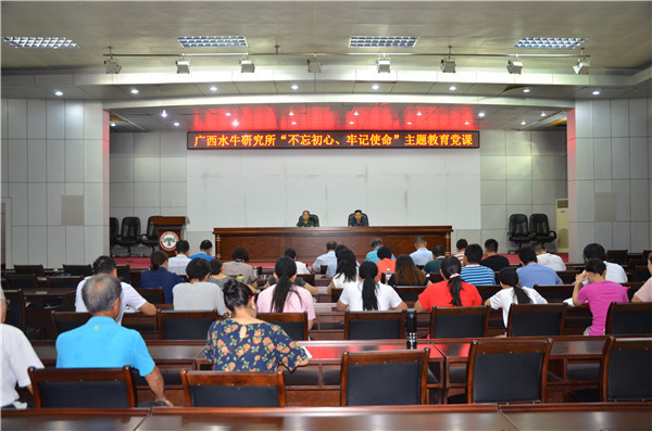 在党课宣讲的环节中,水牛所黄加祥书记首先带领全体党员干部集中学习了习近平总书记在中央政治局第十五次集中学习时的重要讲话精神,通过结合习近平总书记的讲话精神全面剖析水牛所存在的8个方面突出问题。他强调,必须把“不忘初心、牢记使命”作为加强水牛所党建工作的永恒课题和全所党员干部的终身课题,以自我革命、刀刃向内的勇气和决心,正视问题,真刀真枪解决问题,营造创建出一支奋发有为、敢于担当、开拓创新的水牛科研队伍,以优异的成绩和全新的姿态营造新中国成立70周年。