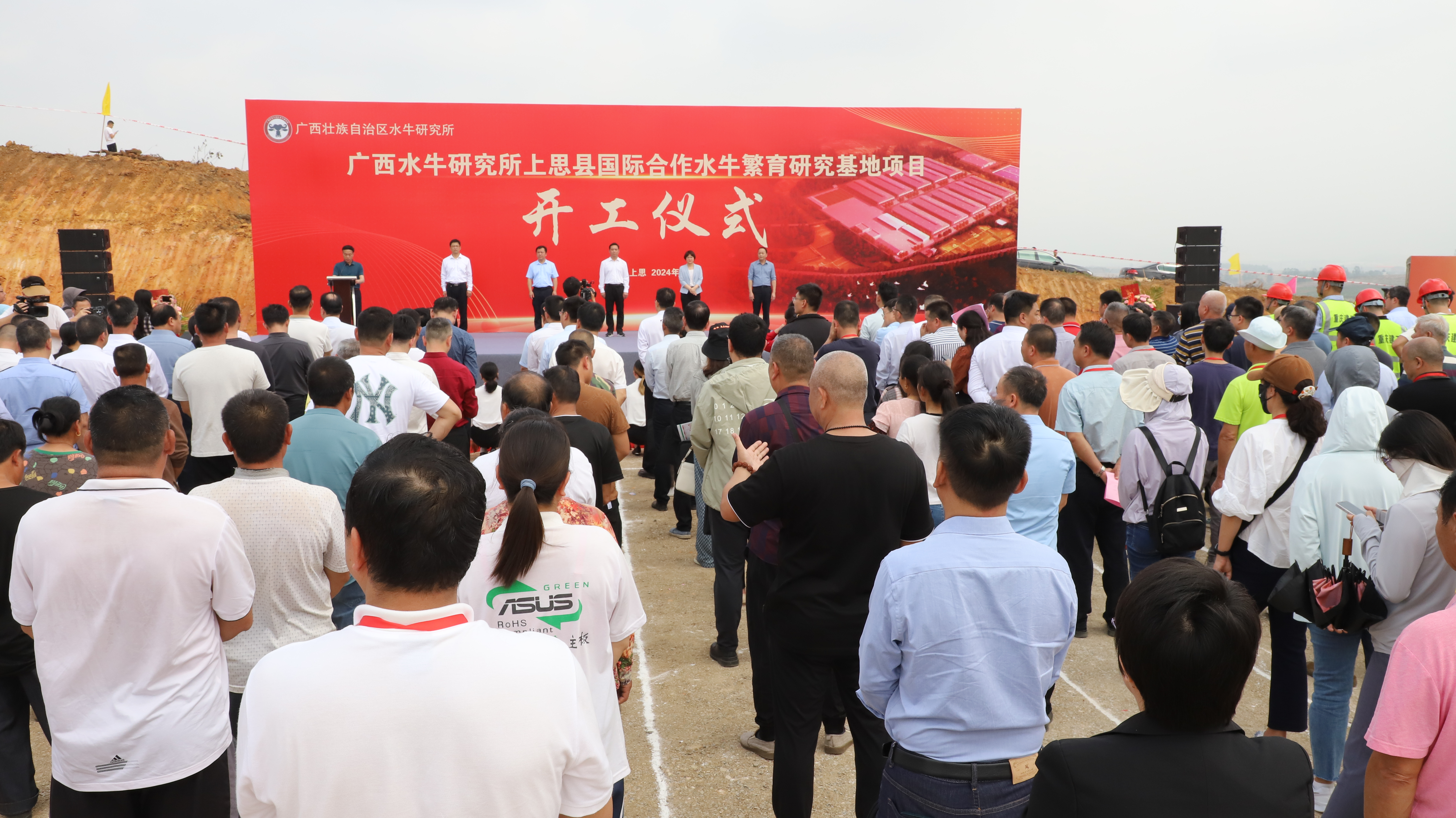 为加强国际合作,打赢水牛种业翻身仗,推动水牛产业高质量发展。3月26日,广西水牛研究所在上思县举行广西水牛研究所上思县国际合作水牛繁育研究基地项目开工仪式,加快推进基地建设。自治区农业农村厅二级巡视员李豪兵、防城港市副市长廖云、广西农垦集团副总经理黄永华、重庆城建控股(集团)董事长李广等出席仪式活动,廖云副市长、李广董事长分别为活动致辞,李豪兵巡视员宣布开工。