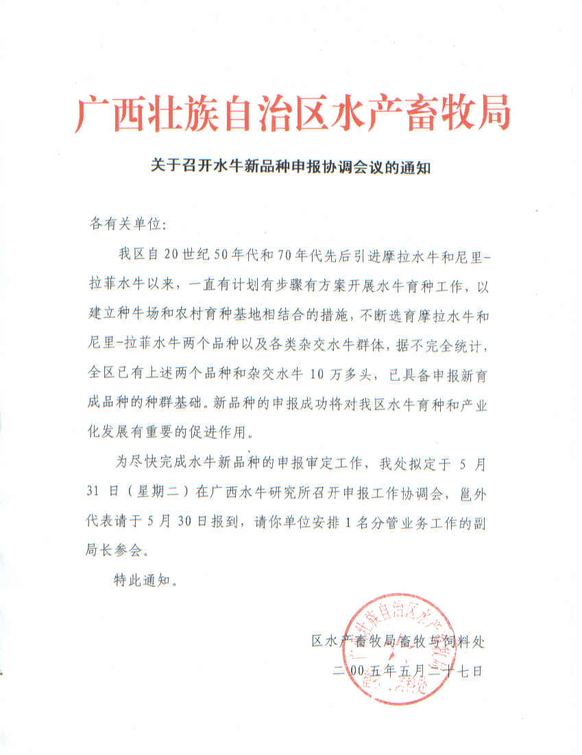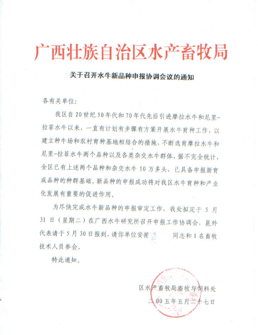 关于召开水牛新品种申报协调会议的通知