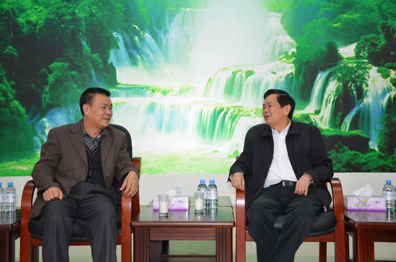 覃瑞祥副主任(右1)与杨炳壮研究员亲切交谈
