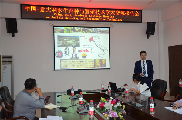 在 “中国—意大利水牛育种与繁殖技术学术交流会”上,Alfredo教授与我所科技人员进行了深入的交流,进一步增进了双方彼此的了解。他向我所科技人员介绍了其本人和团队多年来的研究进展和成果,并分享了水牛育种和改良方面的心得体验。对于我所在水牛胚胎生物技术方面的成果,他给予了高度的评价,同时也希望能尽快与我所达成相关方面的合作,利用双方的优势,共同推进中意两国水牛科研的发展。