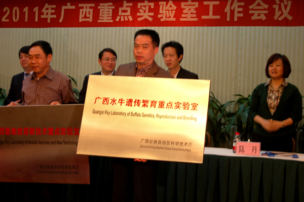 年广西重点实验室工作会议”,对第三批广西重点实验室进行授匾,我所榜上有名,荣获“广西水牛遗传繁育重点实验室”牌匾。