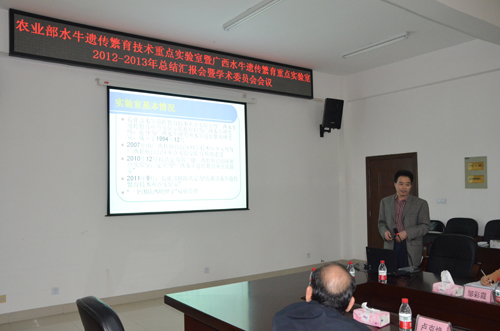 会上,杨炳壮所长感谢各位委员能在百忙之中参加本次会议。他坦言,重点实验室今天取得的成绩离不开学术委员会的支持和指导,衷心希望各位委员能继续一如既往的支持重点实验室的建设和广西水牛产业的发展,对亟待改进的方面献言献策,全面提升中国水牛的科研实力。随后,重点实验室主任梁贤威副所长将2012年至2013年重点实验室工作建设情况作了总结汇报。在两年来的建设历程中,重点实验室共获立项50项,其中国家级项目5项,到位经费数百万元;荣获广西科技进步三等奖1项,申报专利12项,获授权专利3项,颁布了国家标准2个和地方标准1个,发表论文87篇,其中9篇被SCI收录。在获得成绩的同时,重点实验室也在建设的工作中遇到了诸如高层次科研人才不足和技术创新实力亟待提升等制约发展的问题。