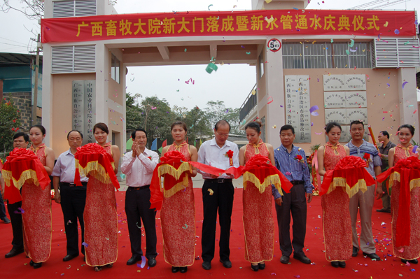 新大门的落成和新供水管道的通水,解决了畜牧大院长期以来大门形象和用水方面的困扰,保障畜牧大院居民的安稳生活,是一项重要的民生工程,对畜牧大院科研生产、对外交流合作、招商引资工作的正常开展,对“中国-东盟现代农业科技合作园区”的顺利建设和“中国-东盟(南宁)渔业文化周活动”的顺利举办,对未来水产畜牧事业的扩大发展都具有积极的现实意义。
