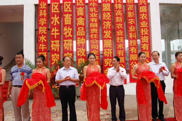 庆典活动由自治区水产畜牧兽医局副局长粟永华主持。自治区水产畜牧兽医局局长梁雨祥发表重要讲话。仪式由自治区科技厅领导、自治区水产畜牧兽医局领导和畜牧大院领导为新大门和水牛科普楼剪彩,自治区水产畜牧兽医局局长梁雨祥和自治区科技厅副巡视员彭枝为新供水管道开启阀门。