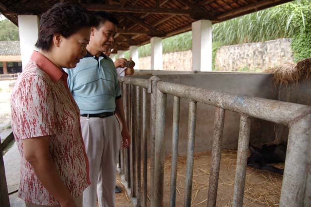 陈际瓦副书记莅临水牛种畜场之时,恰好是世界首例性别控制水牛“可可”刚当上母亲不久。陈副书记饶有兴趣地看望了“可可”母子俩,对这一高科技成果表示祝贺,她充分肯定广西水牛研发人才小高地取得的成就,并对广西的水产畜牧业再上新台阶充满信心。