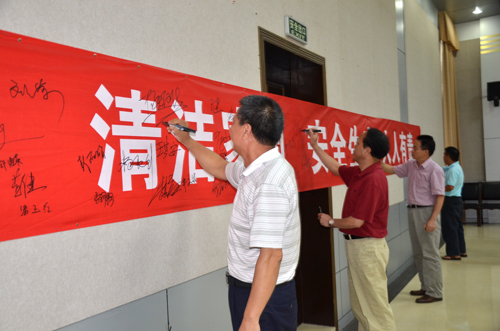 最后,所领导亲自将代表着责任和期望的红旗交到了各支活动小分队代表手中,并与全所职工、各单位代表一起在“美丽广西,清洁家园,安全生产,人人有责”的横幅中签下名字。一杆杆红旗落坚定了每个小分队开展活动的决心,它将在每次活动中迎风飘扬;一个个姓名表明了每个人参加活动的态度,它是每个人对建设美丽广西的美好期待。
