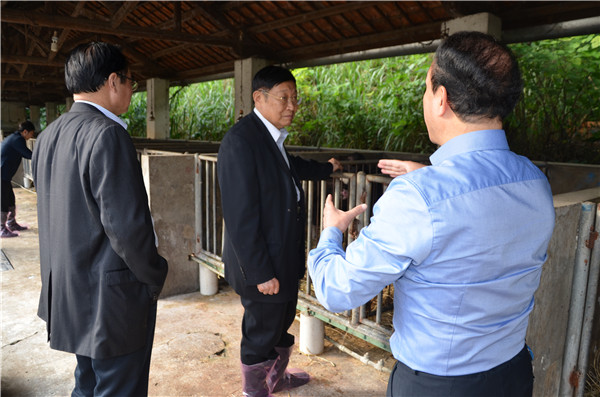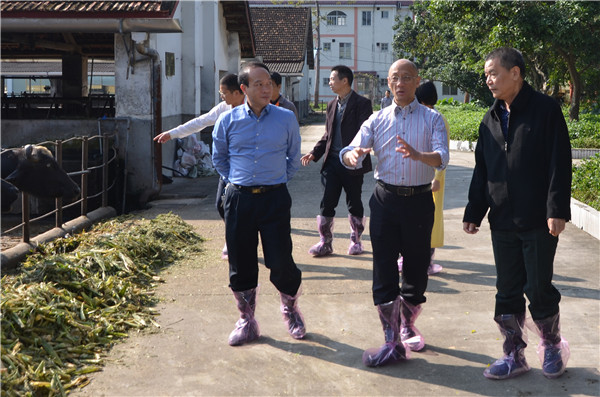 刘秀梵院士(中)视察指导我所水牛种畜场
