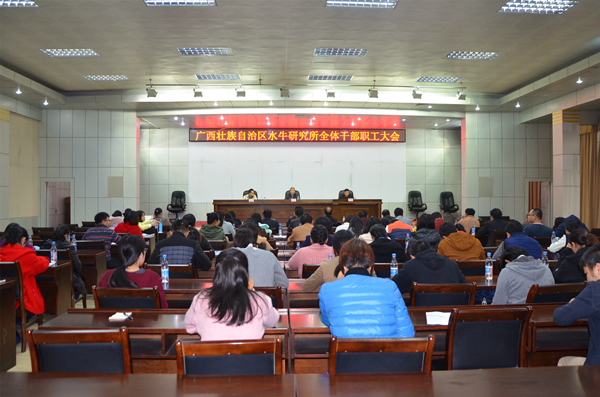 3月28日上午,我所组织全体干部职工召开了“广西水牛研究所全体干部职工暨全体党员大会”。会议由梁贤威副所长主持,黄奇波副所长对我所贯彻落实中央八项规定精神回头看工作进行了通报,黄加祥书记传达了全国“两会”精神,以及彭清华书记在“全区省级领导和厅级主要领导学习贯彻党的十八届六中全会精神专题研讨班”上的讲话精神和在“全区意识形态和宣传思想文化建设、高校思想政治工作会议”上的讲话精神。